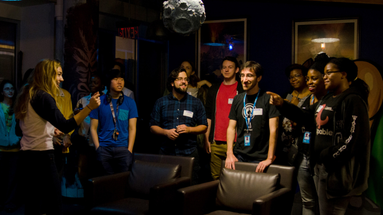 To kick off the project, industry leaders from Cartoon Network's late-night programming partner, Adult Swim, introduced ID tags currently on air. After students became familiar with the network's vision and branding, they pitched eight animations, four of which were chosen for production during a tour of the studio. Breaking into four teams, the students took the winning concepts and continued to refine style frames, storyboards, motion tests and dailies. Adult Swim provided feedback and helped create custom audio for each ID tag.