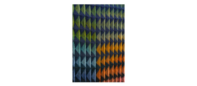 In her debut solo museum exhibition, Anya Molyviatis presents a new series of her signature three-dimensional textiles exploring relationships between light and materiality. The exhibition includes Molyviatis’ largest weavings to date, simultaneously exquisite in their intricate construction and powerful in their grand visual impact. In works featuring a diamond waffle pattern developed by the artist, Molyviatis uses both the physical structure of interwoven threads and the visual cues of color juxtapositions to convey an enhanced sense of depth. To create each work, Molyviatis weaves hand-dyed cotton with mohair wool, meticulously threading thousands of fine fibers through 40 harnesses of a vintage loom — one of only 20 in existence worldwide. The resulting works harmoniously blend technology and craft, with compositions that augment our perception of weight, density, and sound through awe-inspiring designs. Enveloping the gallery in soft gradients of texture and color, Molyviatis offers visitors an extraordinary setting for contemplation and reflection.