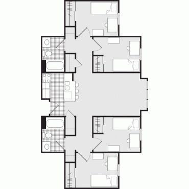 - Apartment-style living with private bedrooms for four students
