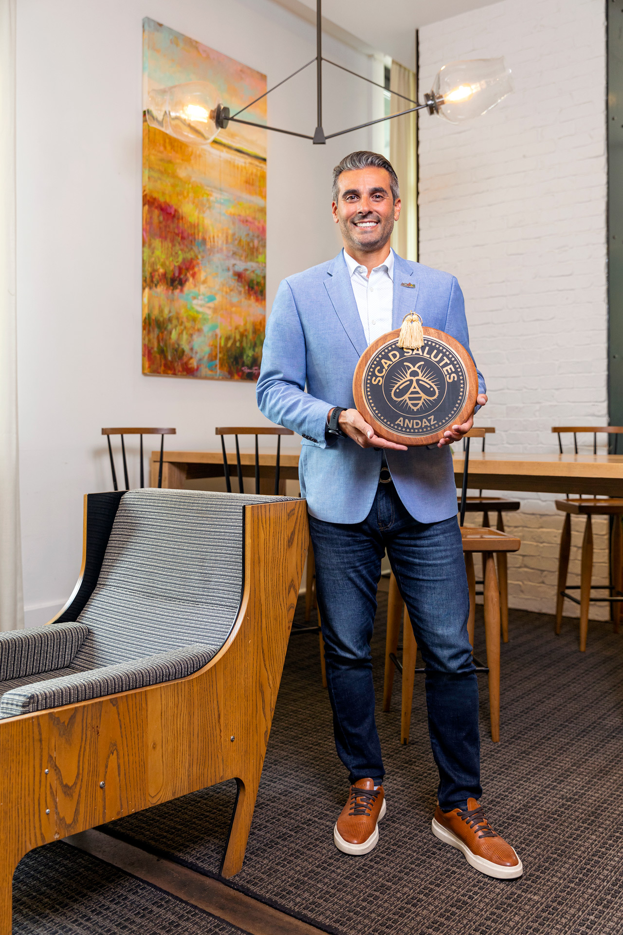 Ernesto Fernandez, general manager of Andaz Savannah, is recognized with the SCAD Salutes award. For nearly a decade, the boutique luxury hotel has offered Savannah residents and visitors to the city alike a signature experience built on an enduring commitment to customer care.