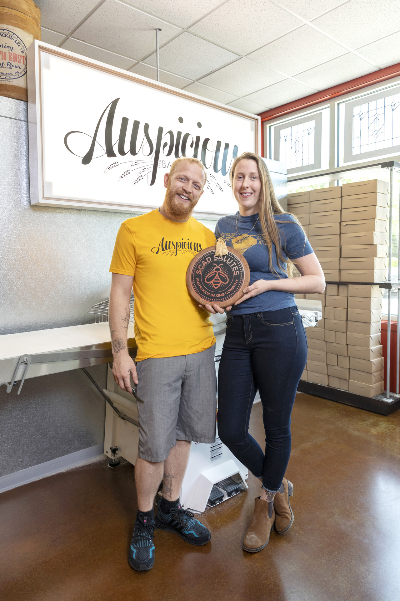Auspicious Baking Co. owners Mark Ekstrom and Katie Bryant are recognized with the SCAD Salutes award. Since 2017, Auspicious Baking Co. has continued to dish out delicious pastries, breads, and other treats to Savannahians at heart and here at home.