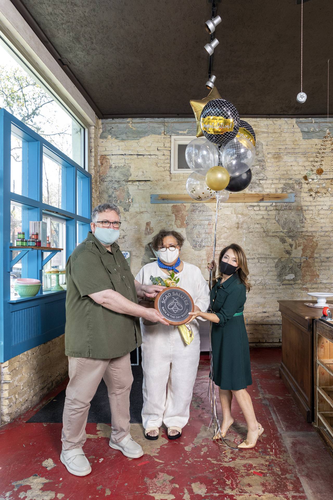 SCAD Salutes recognizes important connections and essential values SCAD shares with local leaders in the university's hometowns of Atlanta and Savannah. Bestowed by President Wallace, the award celebrates people, businesses, and organizations who persevered through the pandemic with valuable contributions to the community that create a better future for all.