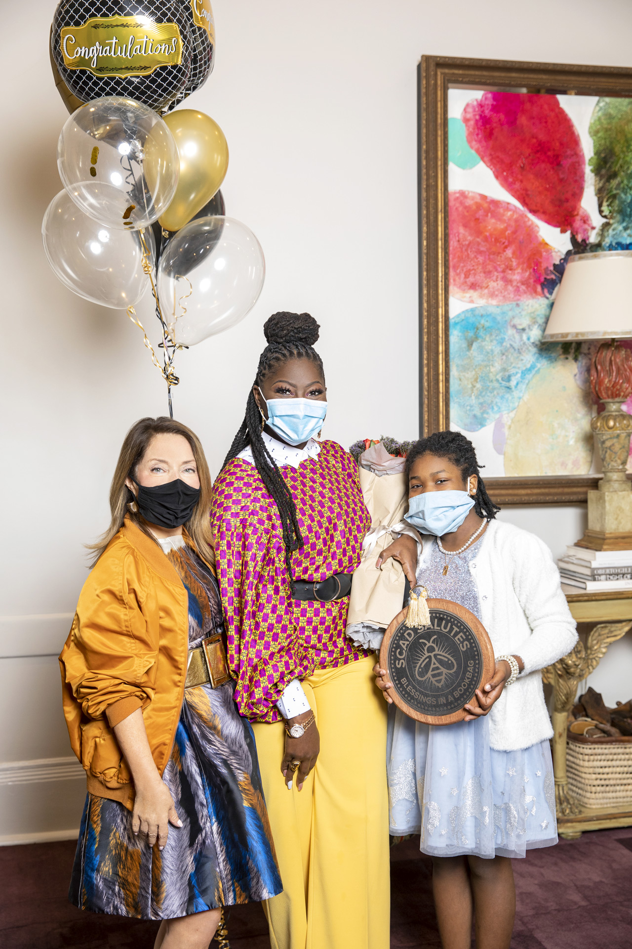 SCAD President and Founder Paula Wallace with Mahogany Bowers, founder of Blessings in a Book Bag, a nonprofit organization in Savannah working to end food insecurity for elementary-aged children.