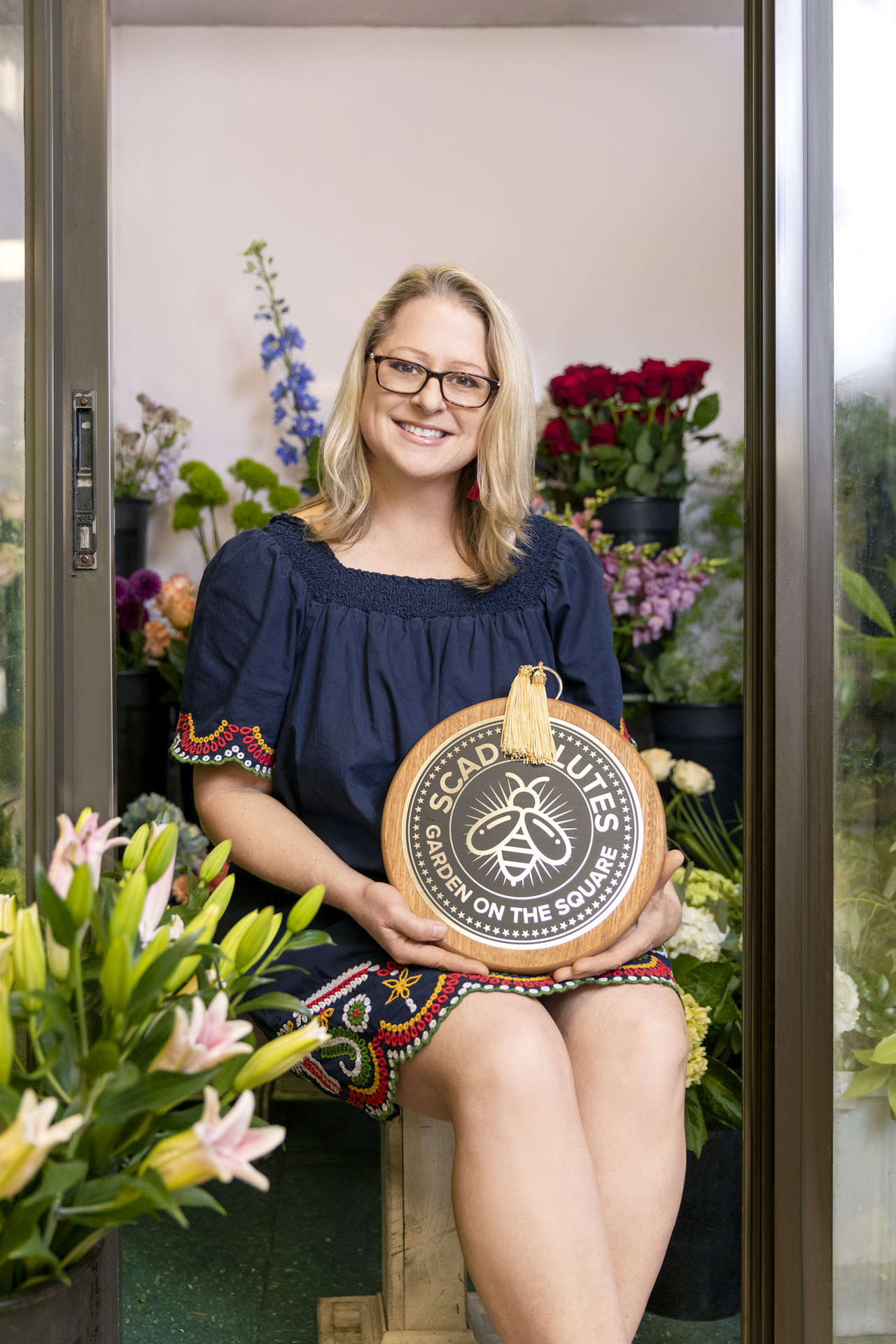 Julie Driscoll, founder of Garden on the Square, is recognized with the SCAD Salutes award. For more than 20 years, the staff at Garden on the Square has fashioned fresh flowers and distinctly charming arrangements.