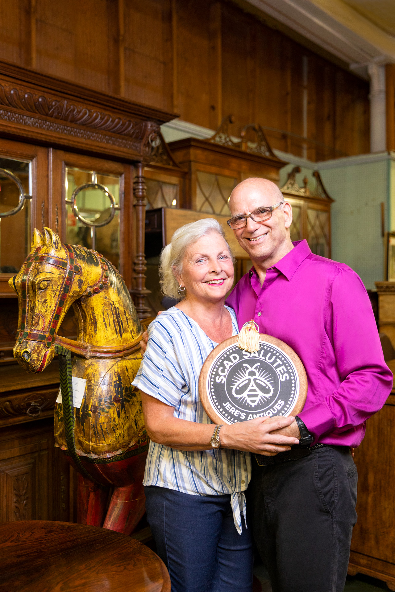 Jere and Elizabeth Myers, owners of Jere's Antiques, are recognized with the SCAD Salutes award for their boundless dedication to authentic antiques, carefully designed bespoke furniture, and exceptional experiences.