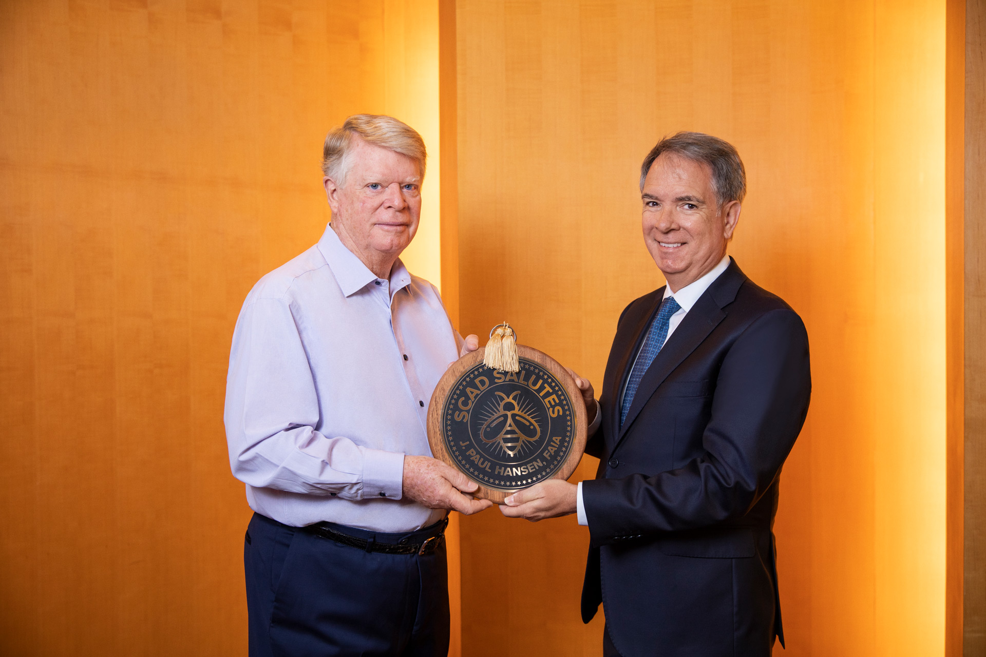 Paul Hansen, president of Hansen Architects, receives the SCAD Salutes award from Danny Filson, SCAD executive director of executive administration. For decades, Hansen and his team have worked tirelessly to preserve the historic architecture and charm of Georgia’s First City.