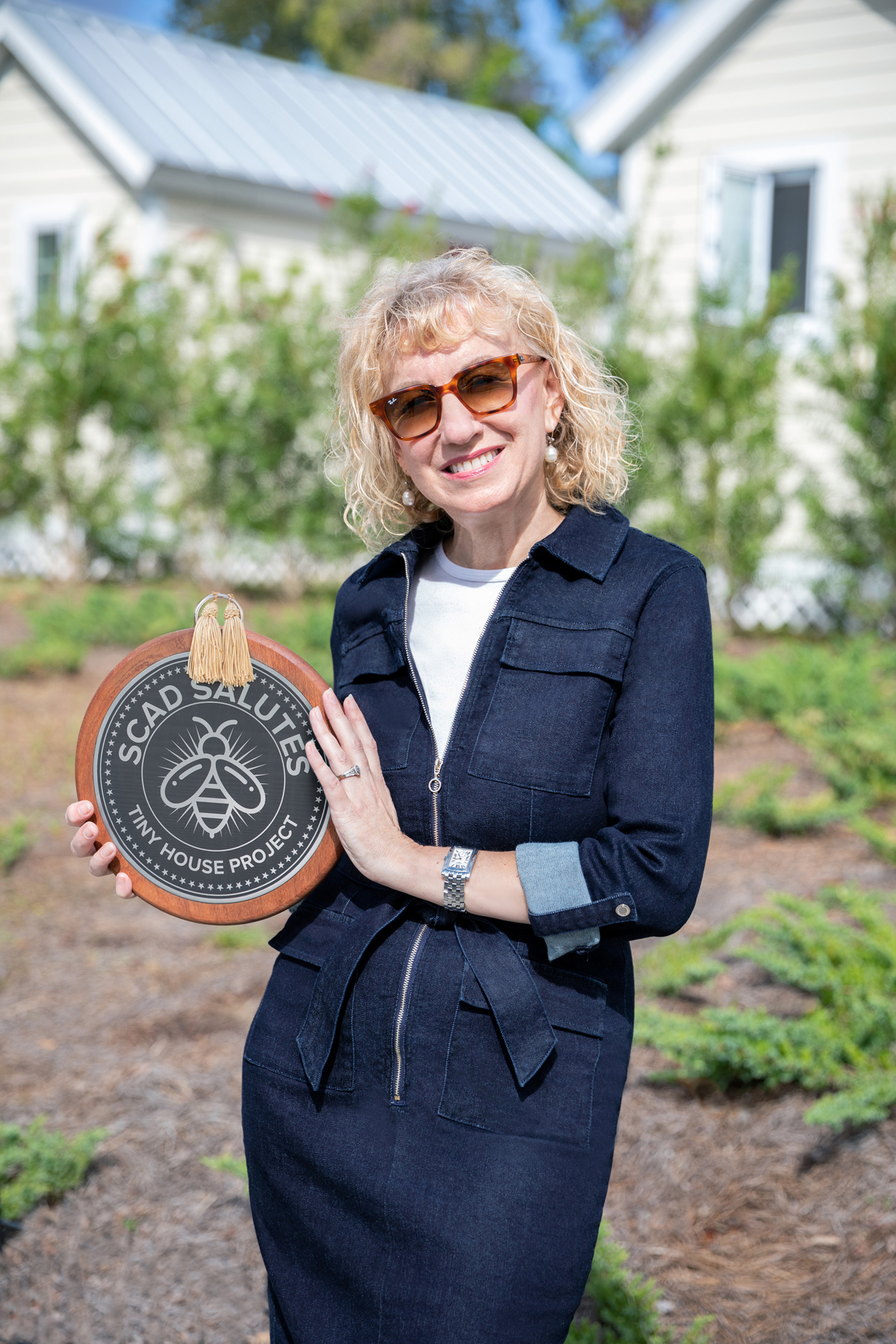 Cindy Kelley, executive director for the Chatham-Savannah Authority for the Homeless, is recognized with the SCAD Salutes award for her work with the Tiny House Project, a community built to reduce the number of homeless U.S. veterans.