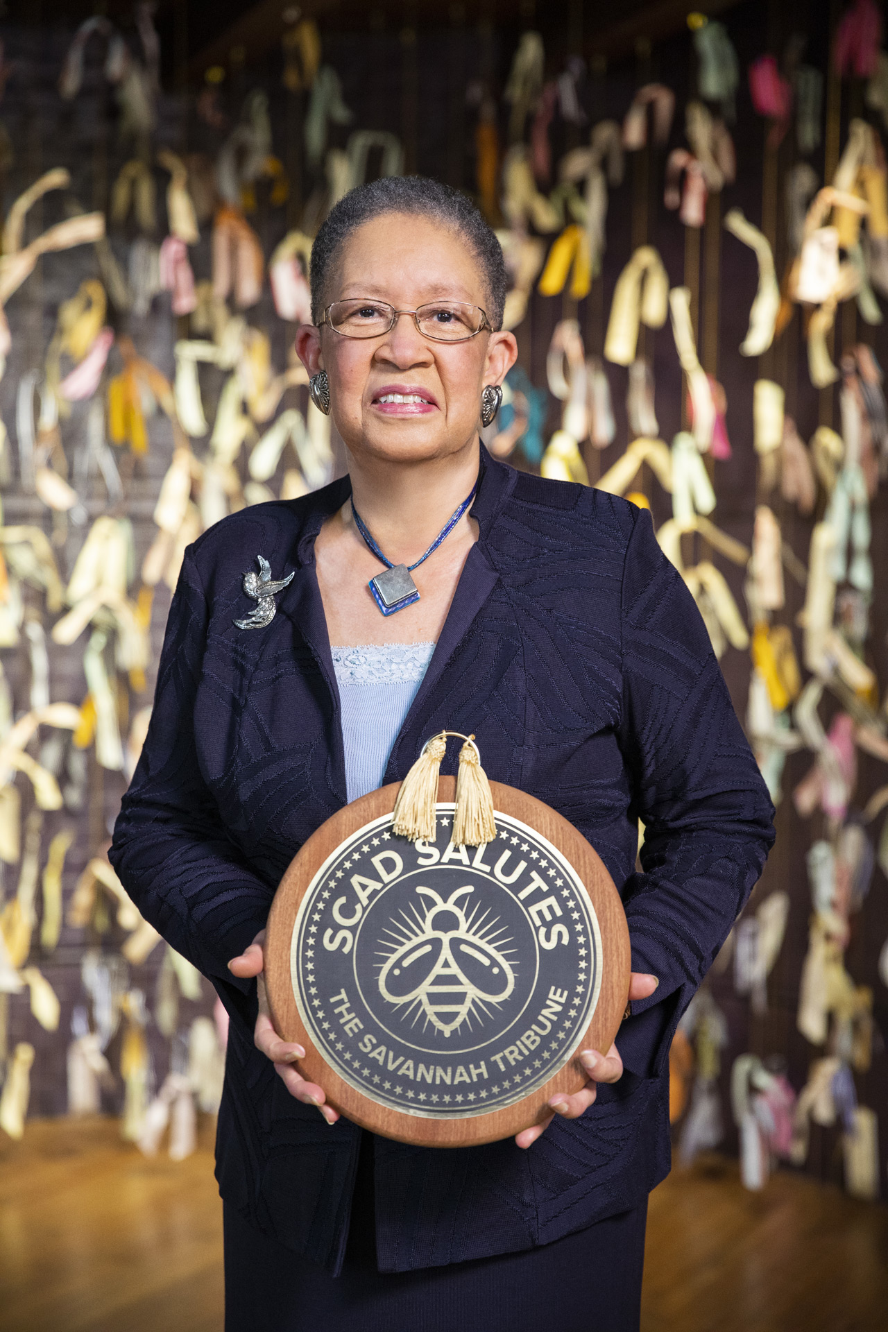 Shirley James, publisher of the nation's oldest African American weekly newspaper, the Savannah Tribune, receives her SCAD Salutes award.