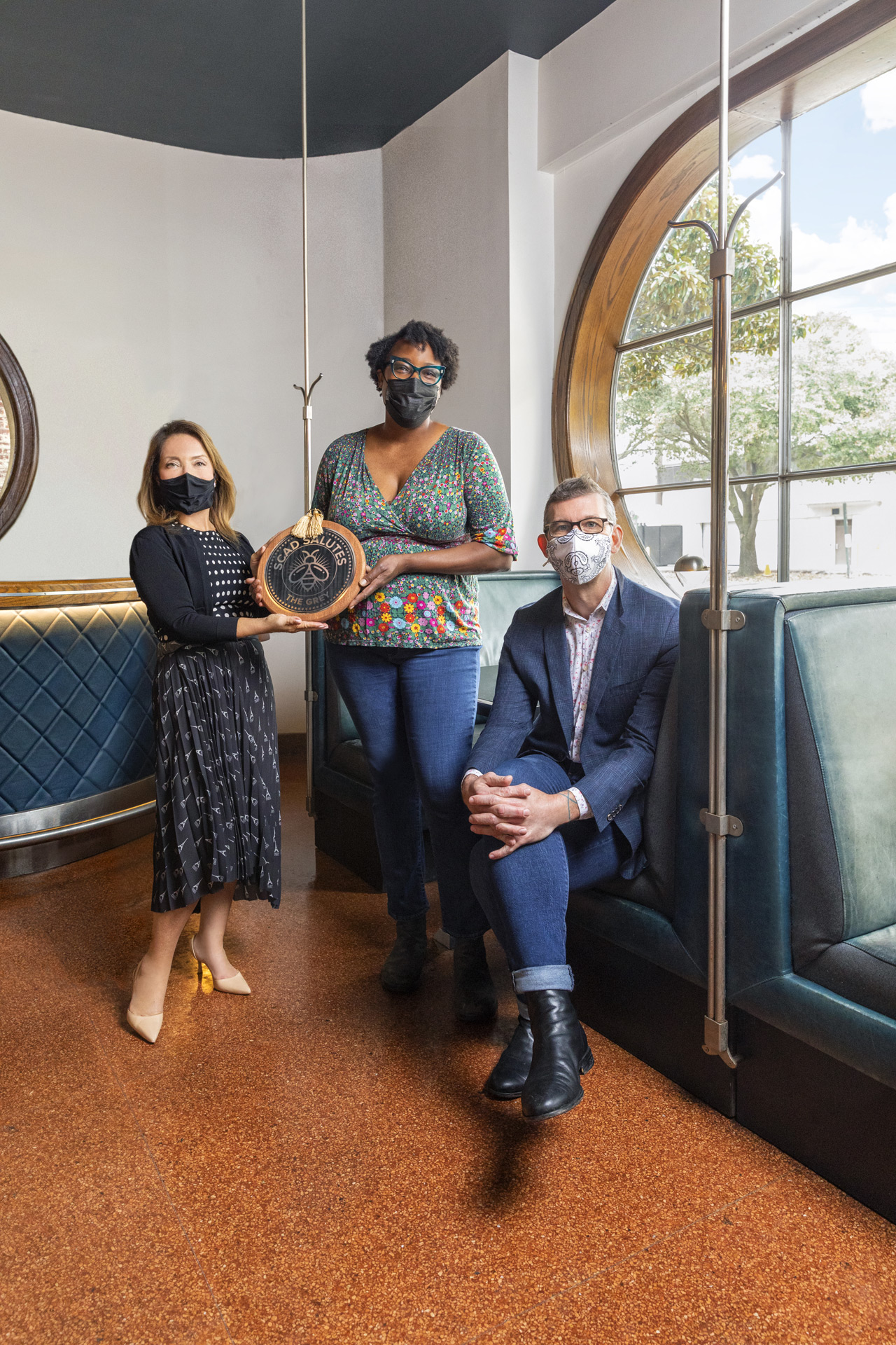 SCAD President and Founder Paula Wallace with Mashama Bailey and John O. Morisano, partners at The Grey restaurant.