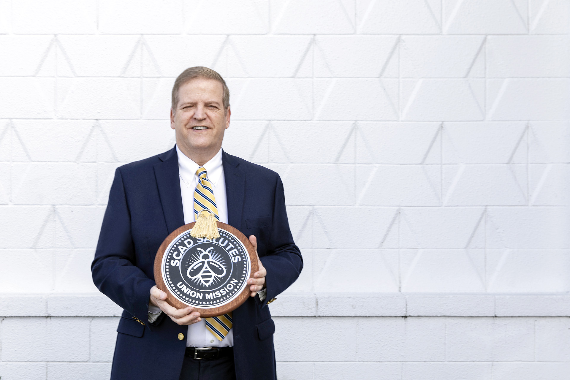 Mike Traynor, CEO of Savannah's Union Mission, receives the SCAD Salutes award. Union Mission's initiatives provides resources and programming to end housing and health care insecurity in Savannah.