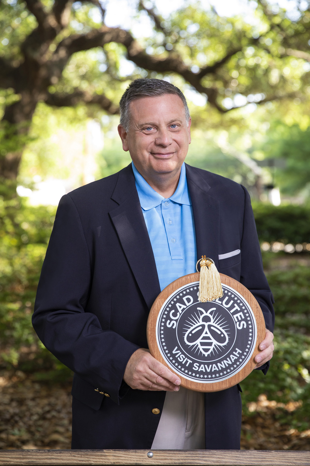 Visit Savannah President Joe Marinelli poses with the SCAD Salutes award. Visit Savannah has unceasingly served as the link between local businesses, visitors, and the remarkable experiences Savannah offers.