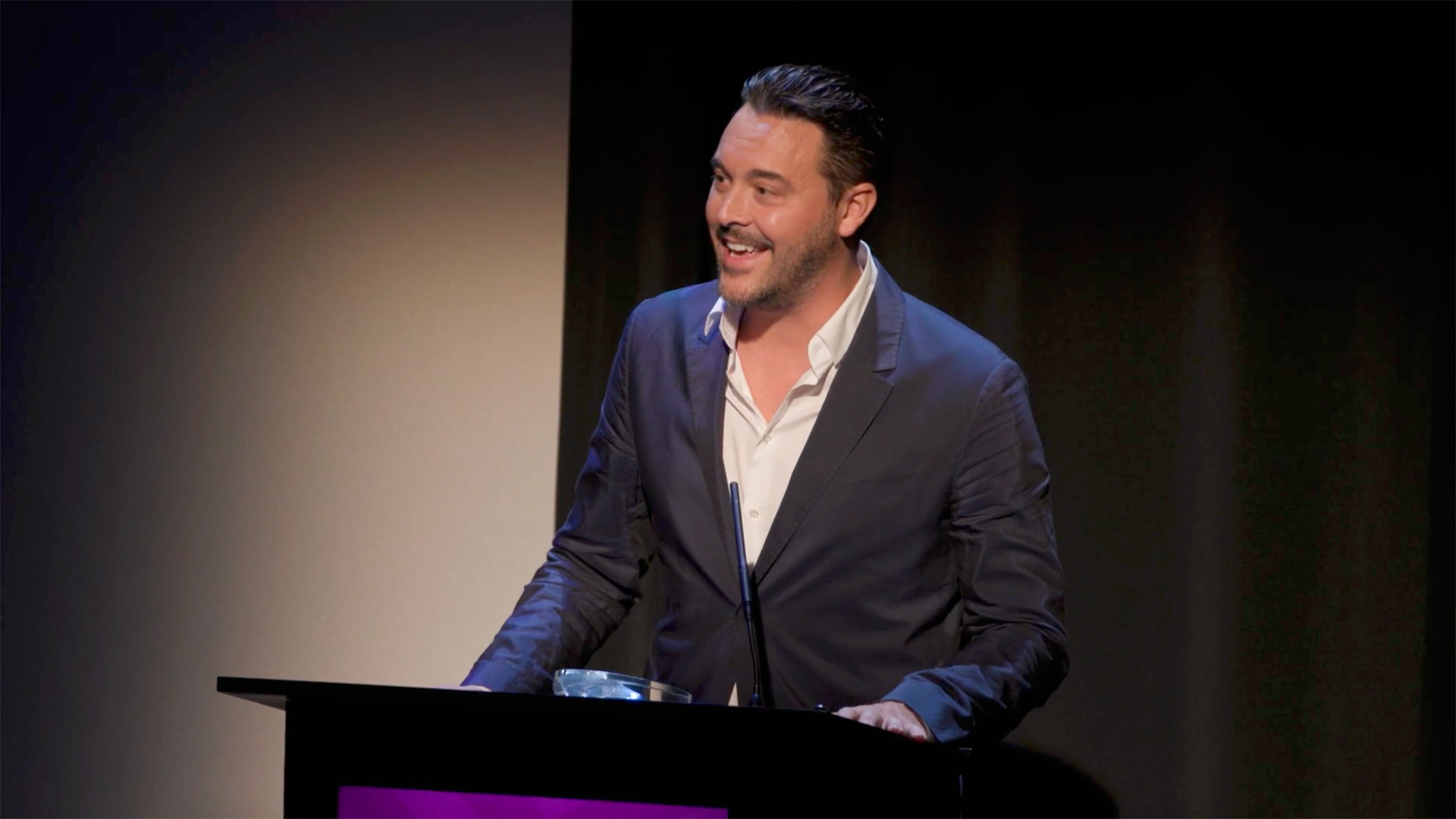 Day of the Fight director Jack Huston accepts his Rising Star Director Award at the 2023 SCAD Savannah Film Festival.