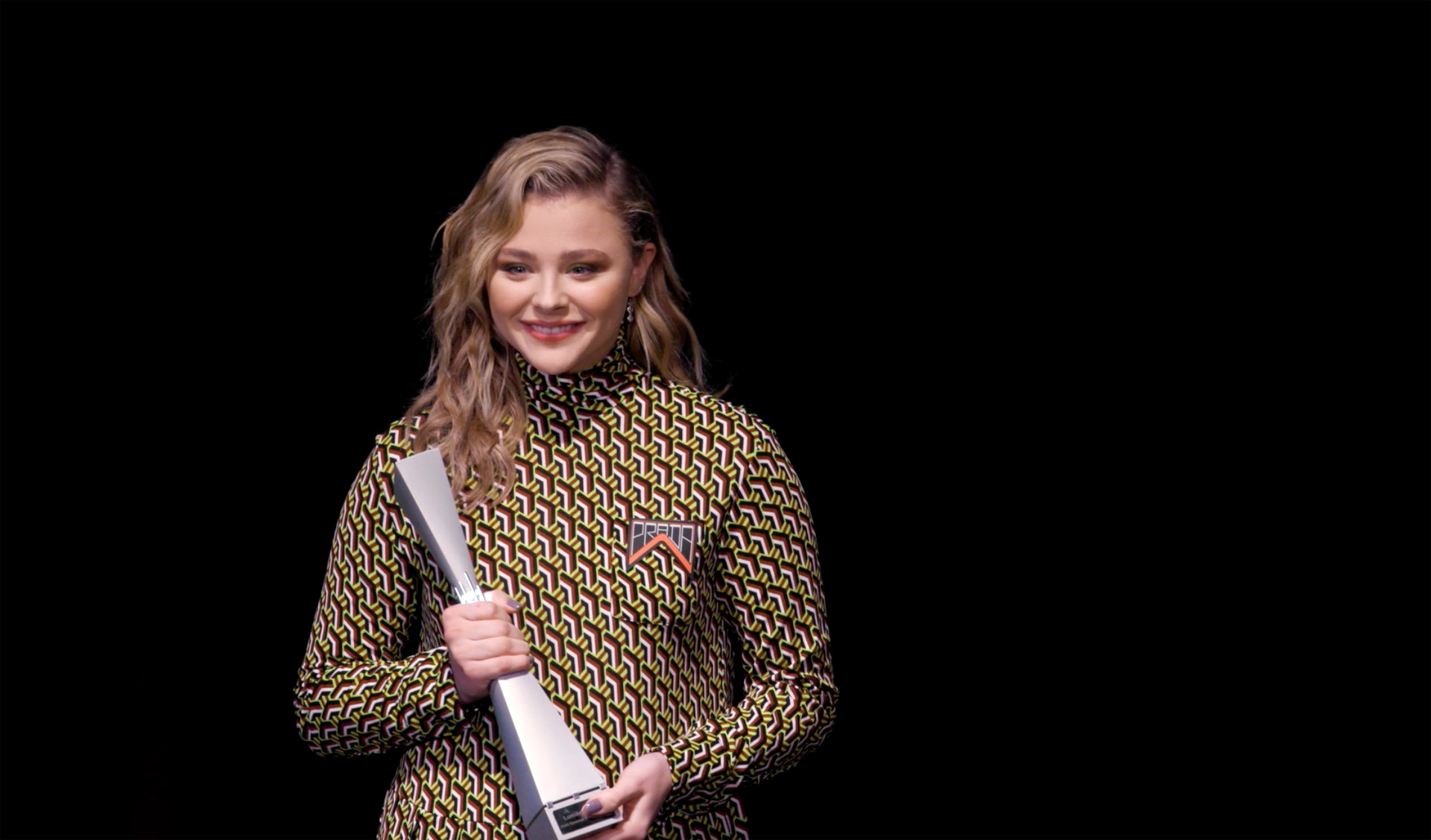 Chloë Grace Moretz accepts her Lumière Award at the 2018 SCAD Savannah Film Festival.