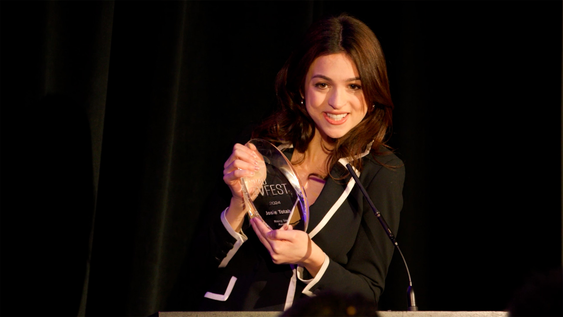 The Buccaneers actor Josie Totah accepts her Rising Star Award at the 2024 SCAD TVfest.