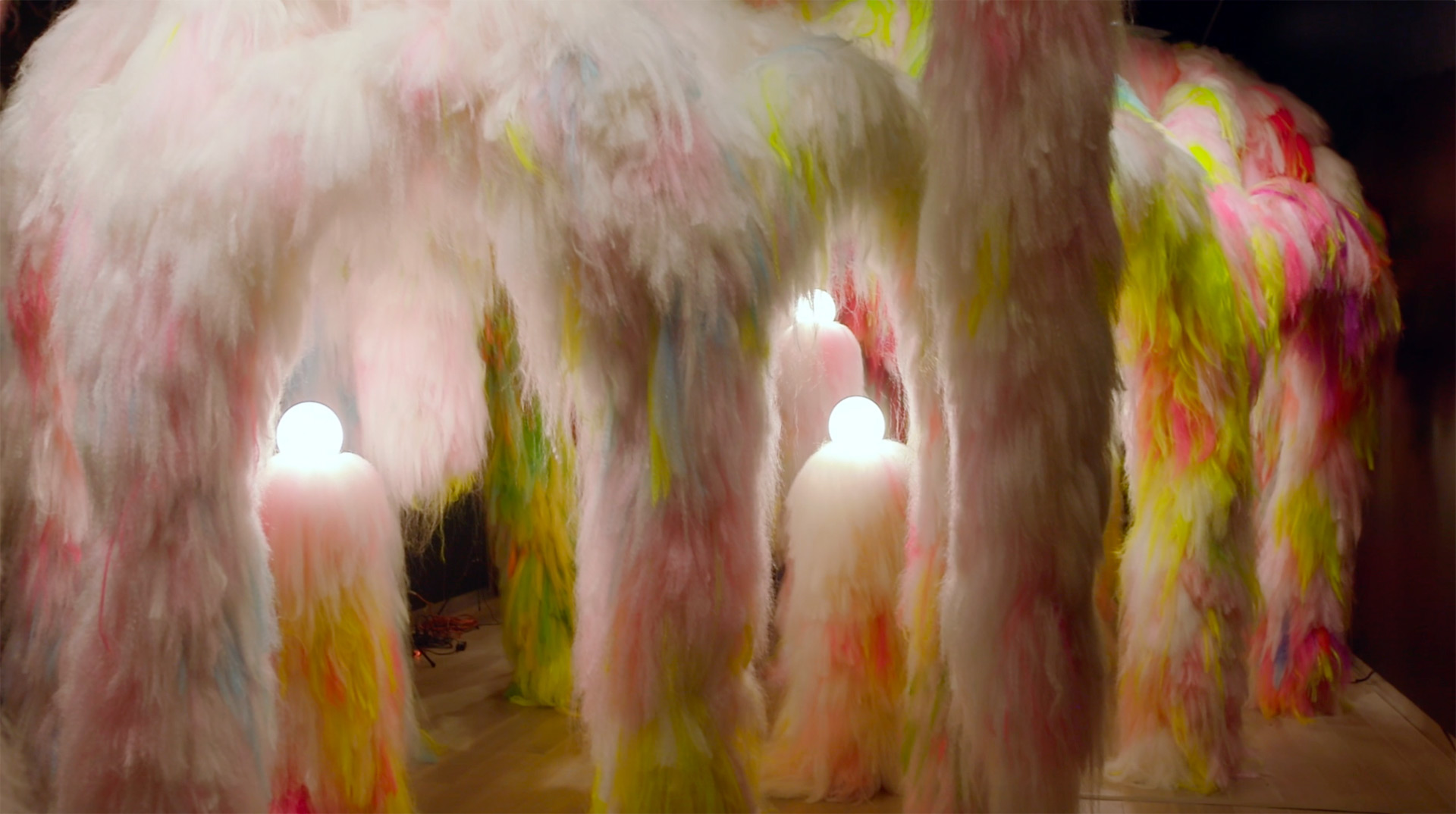 Zone in and zone out in Chromo Zone, an installation by Icelandic artist Hrafnhildur Arnardóttir, aka Shoplifter. In her practice, Shoplifter investigates the power of material to transform spaces. Here, amid the chromatic dwelling of synthetic hair she installed at the SCAD Museum of Art, the artist speaks to the creative act of seeking and experiencing the otherworldly as innately human.